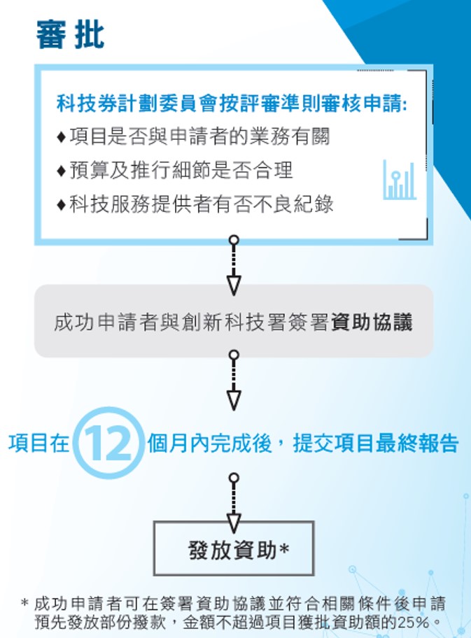 申請獲批後,企業可獲發放30%的資助金額。當項目完成及證明文件獲接納後,企業可獲發放餘下資助金額。